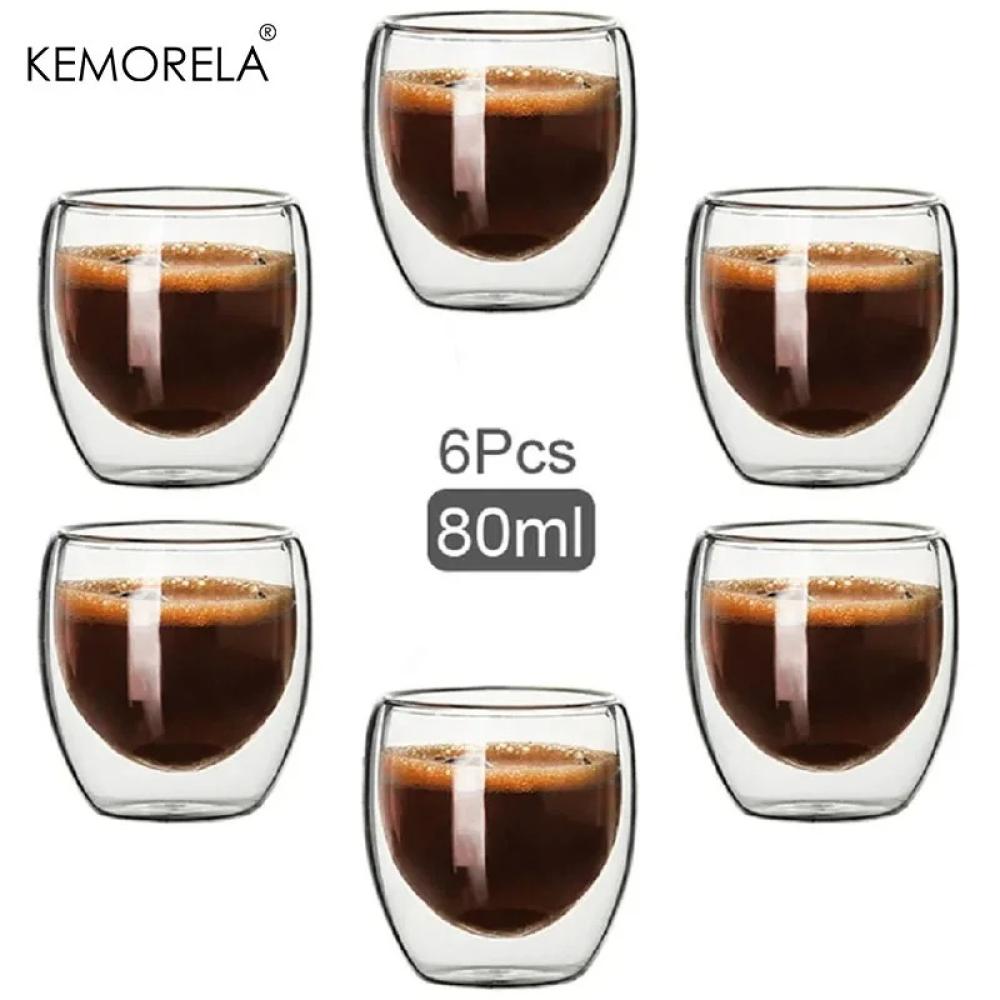 مجموعة 6 قطع كوب اسبريسو مزدوجة بوزن 80 مل لكل كوب، تصميم أنيق وعالي الجودة مثالي لتقديم الإسبريسو بنكهات مركزة وتجربة مميزة في كل مرة.