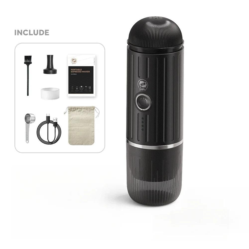ماكينة تحضير القهوة لاسلكية وقابلة لإعادة الشحن تجمع بين الأداء العالي والسهولة، مثالية لتحضير قهوة طازجة أينما كنت دون الحاجة للكهرباء.
